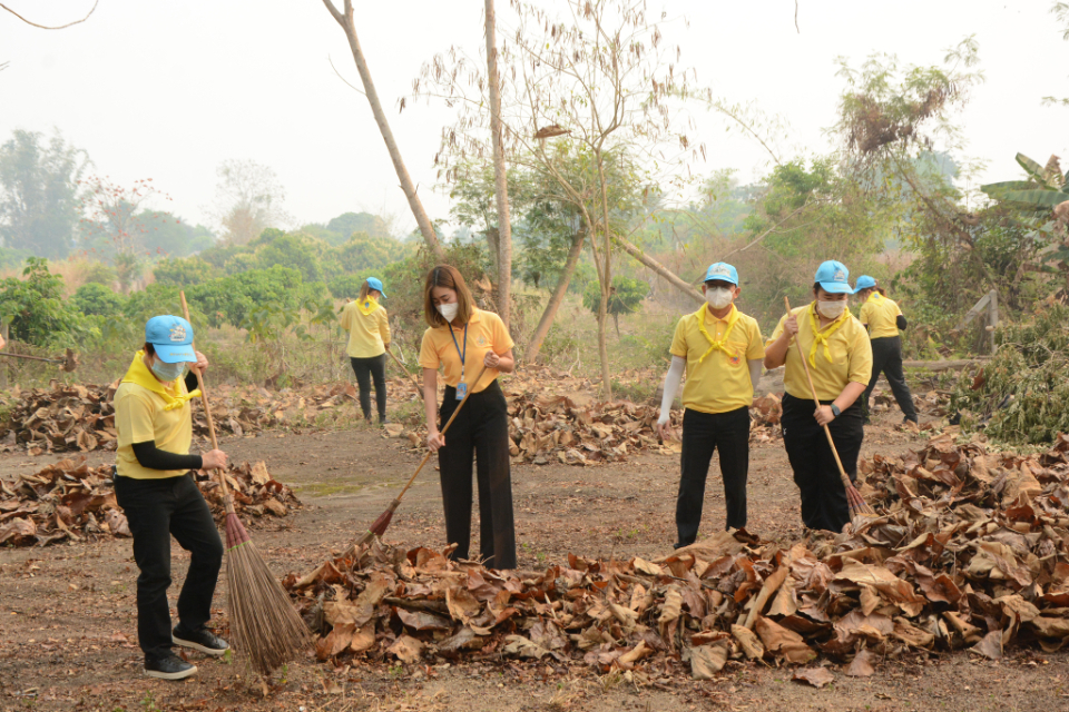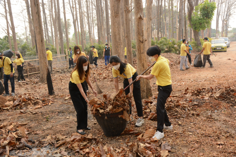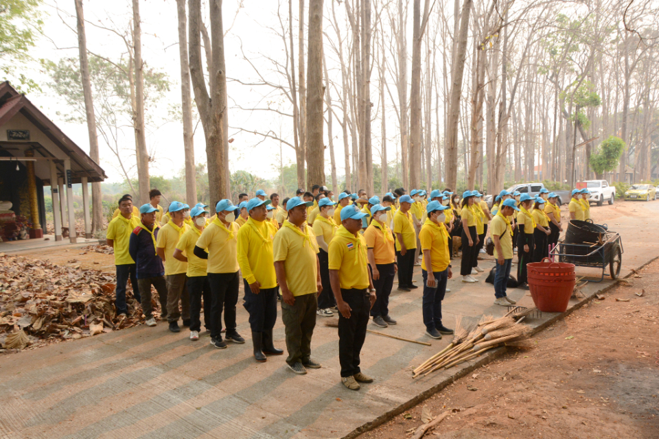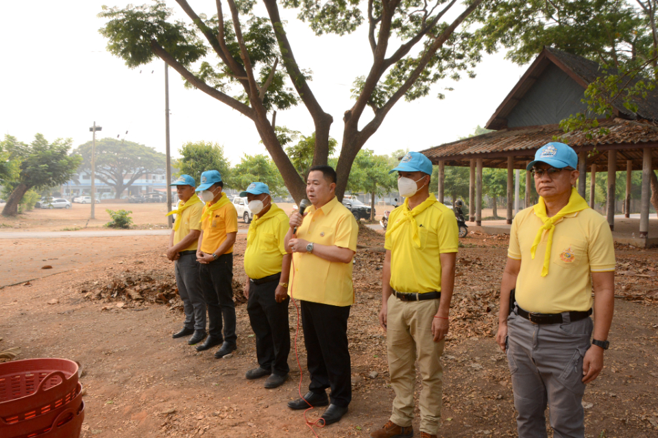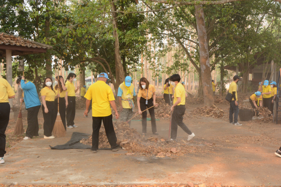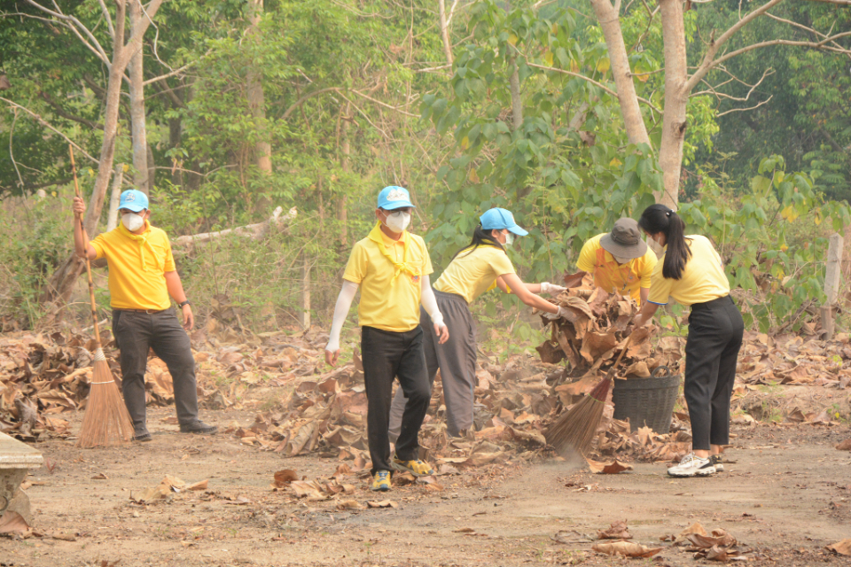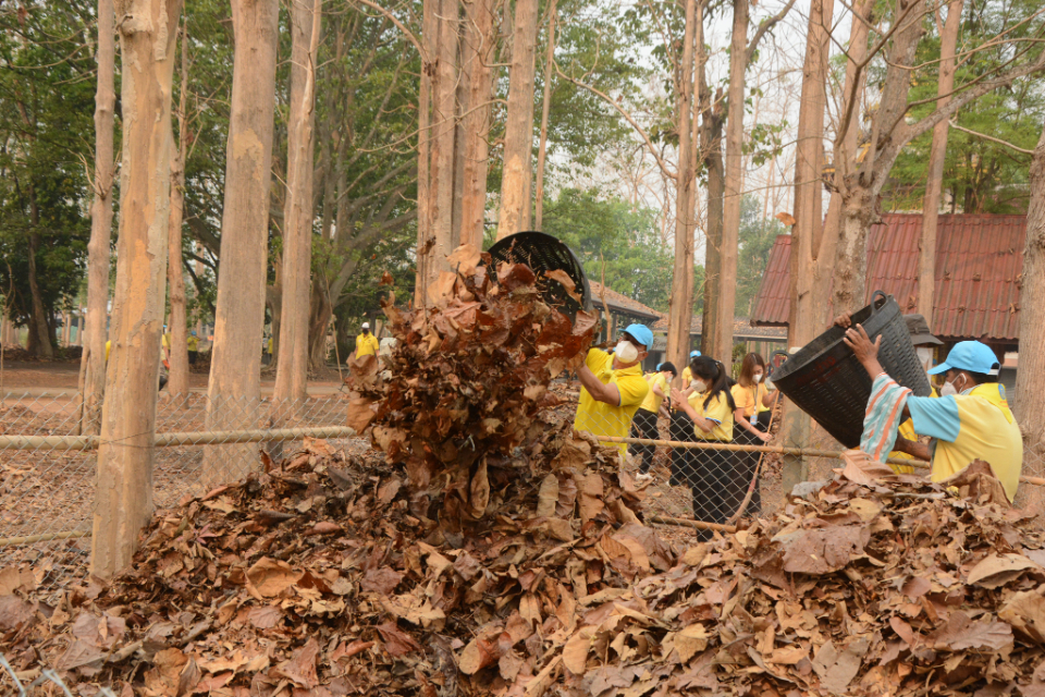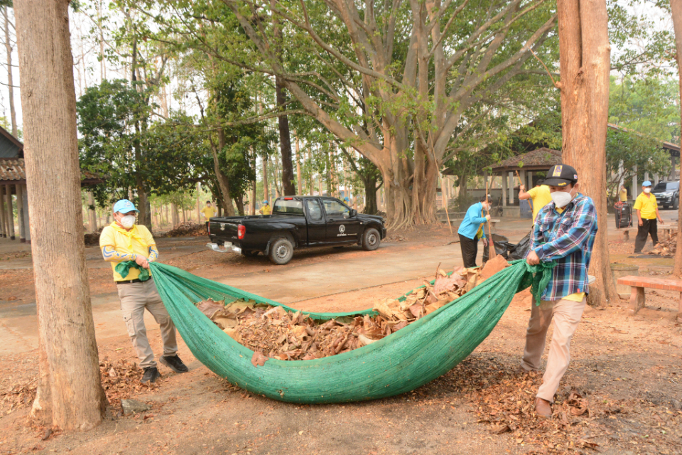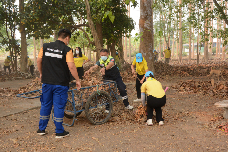 กิจกรรม Big cleaning day เก็บกวาดใบไม้ใส่เสวียน รดน้ำต้นไม้ และฉีดพ่นละอองฝอยสร้างความชุ่มชื่นในอากาศ เพื่อลดฝุ่นละอองขนาดเล็ก ( PM 2.5 )