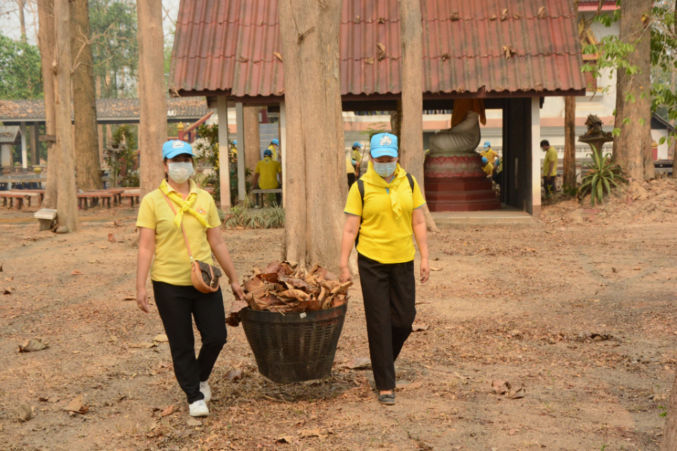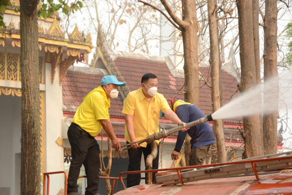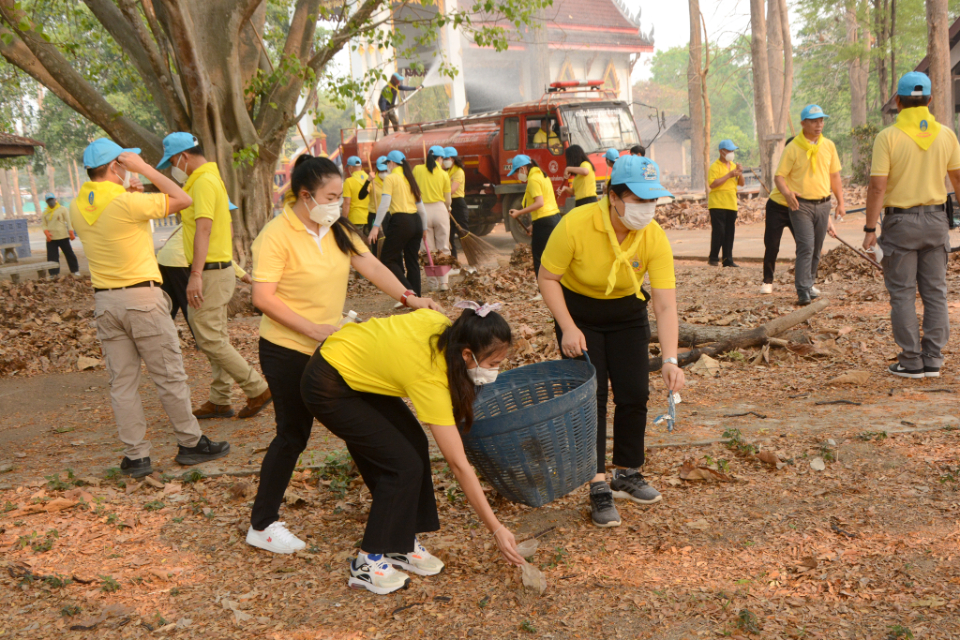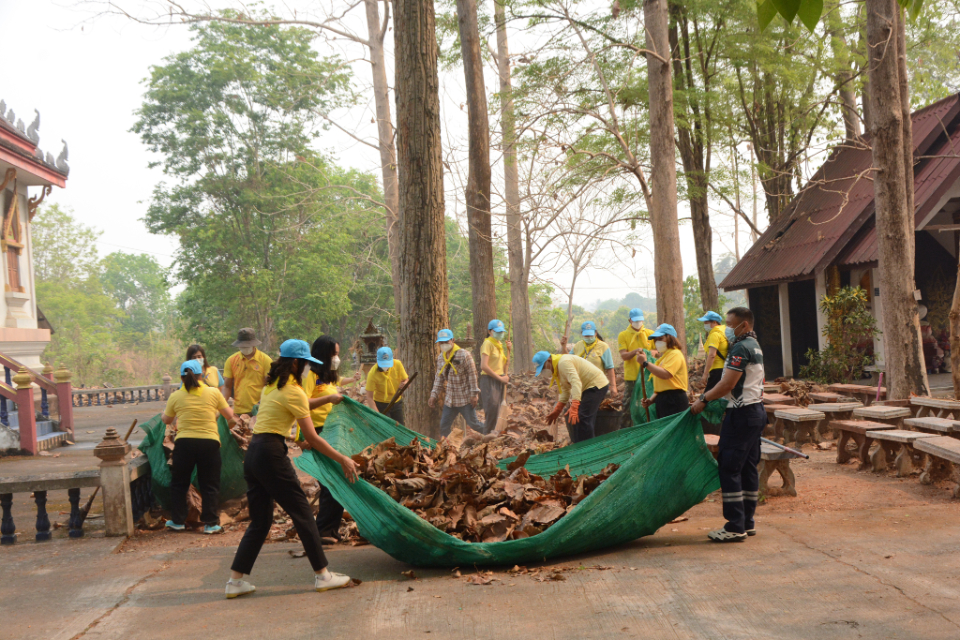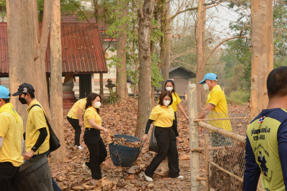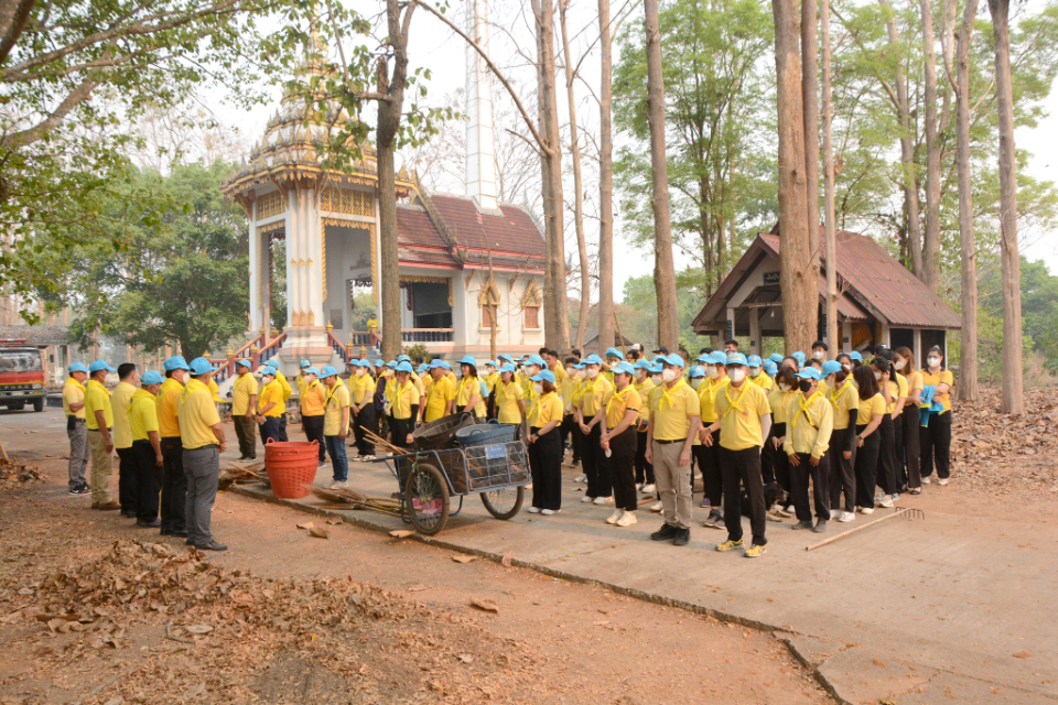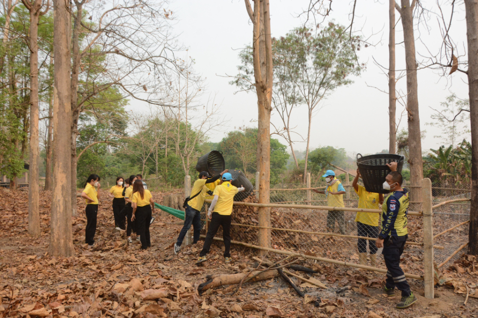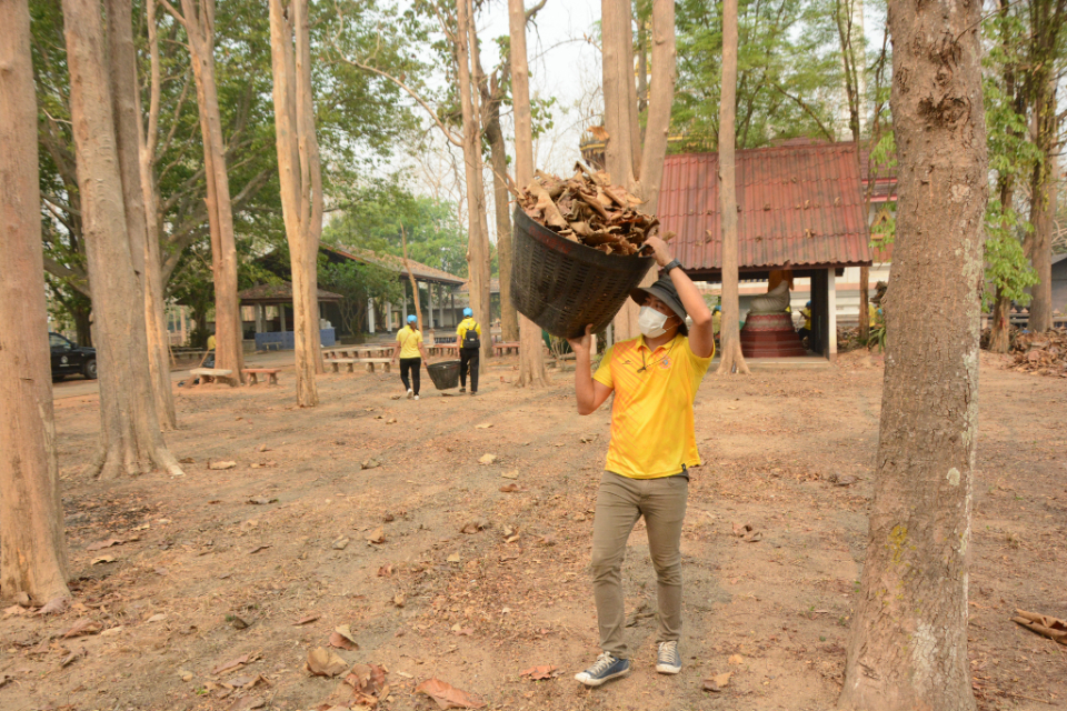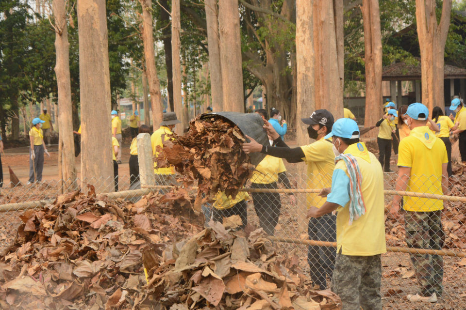 กิจกรรม Big cleaning day เก็บกวาดใบไม้ใส่เสวียน รดน้ำต้นไม้ และฉีดพ่นละอองฝอยสร้างความชุ่มชื่นในอากาศ เพื่อลดฝุ่นละอองขนาดเล็ก ( PM 2.5 )