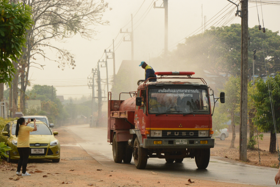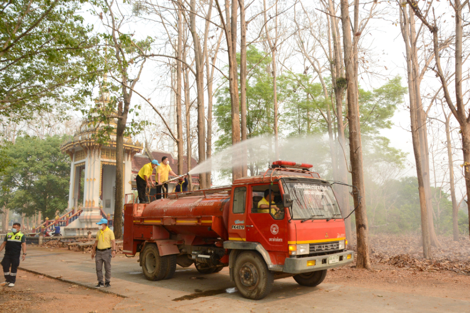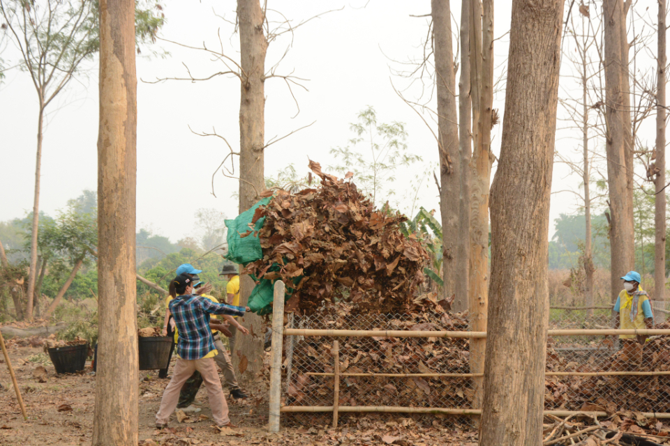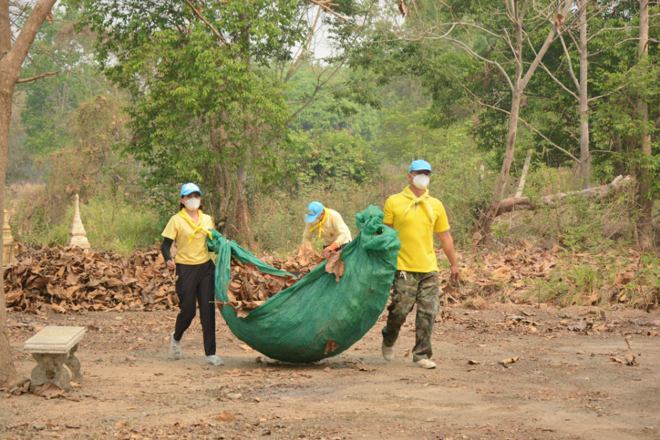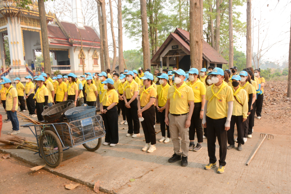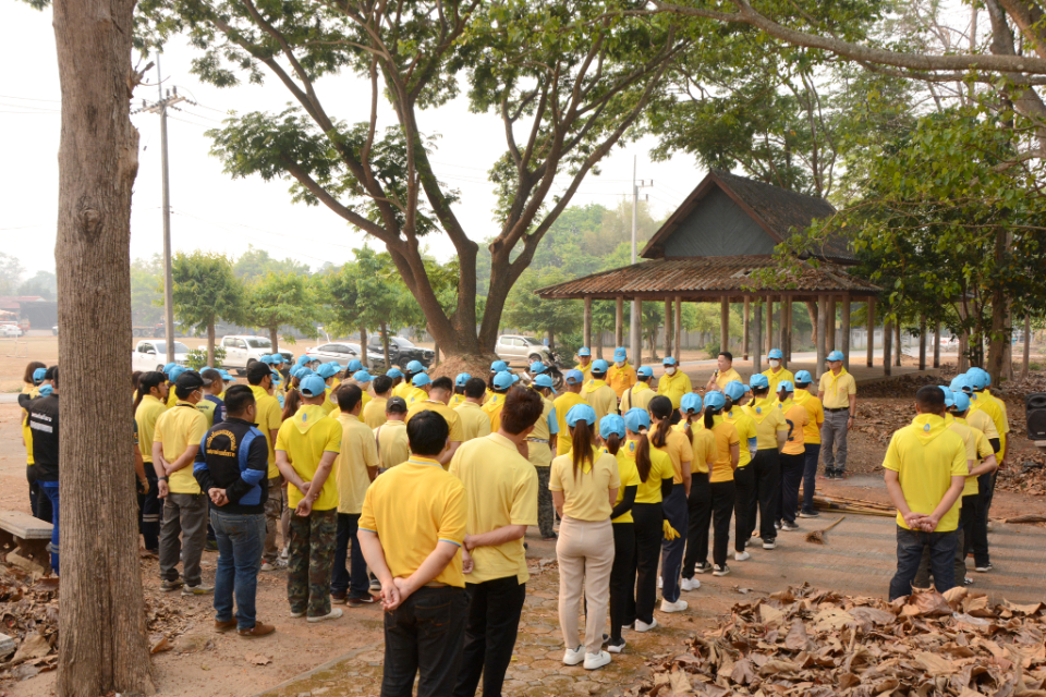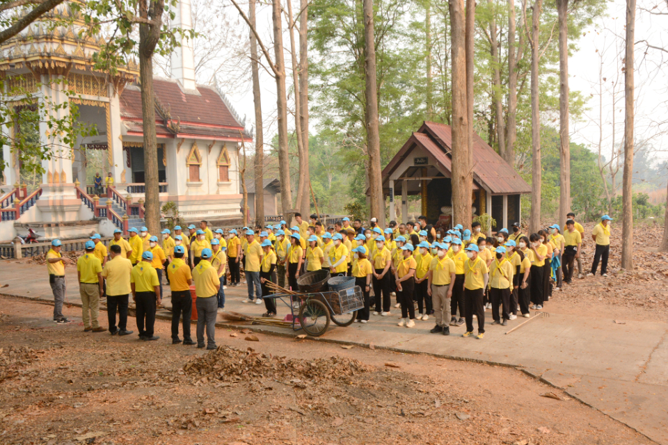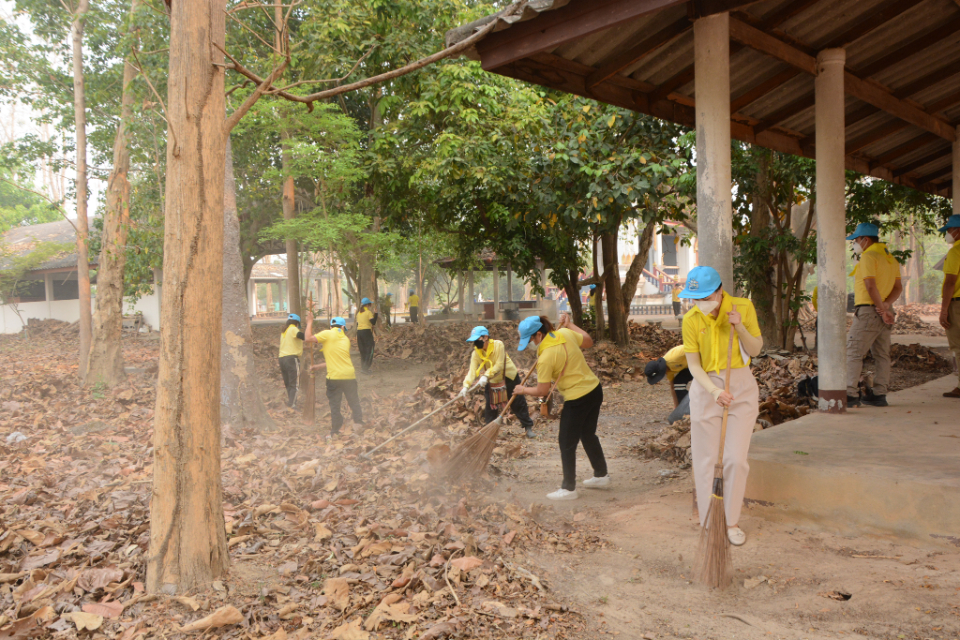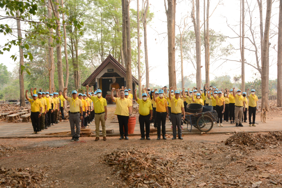 กิจกรรม Big cleaning day เก็บกวาดใบไม้ใส่เสวียน รดน้ำต้นไม้ และฉีดพ่นละอองฝอยสร้างความชุ่มชื่นในอากาศ เพื่อลดฝุ่นละอองขนาดเล็ก ( PM 2.5 )